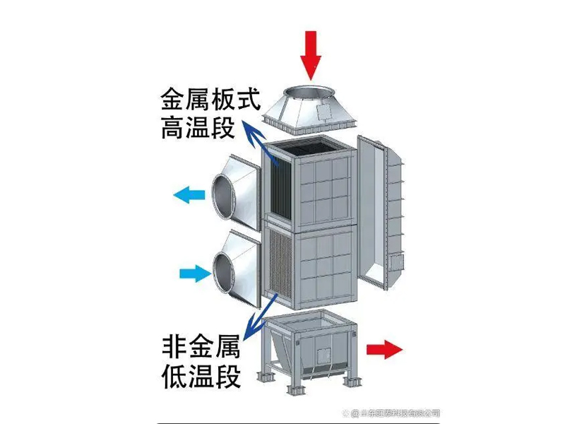 3、我們旺泰科技采取的主要形式就是組合式空氣預(yù)熱器的概念,在高溫段不發(fā)生腐蝕的空氣預(yù)熱器段,采用金屬的板式空氣預(yù)熱器進行余熱回收,在容易發(fā)生低溫露點腐蝕的低溫段,采用了非金屬換熱的空氣預(yù)熱器形式進行余熱回收,我們采用的主要形式有玻璃、石墨烯合金管、碳化硅等多種換熱元件組成的非金屬換熱器來進行解決空氣預(yù)熱器的低溫露點腐蝕問題,