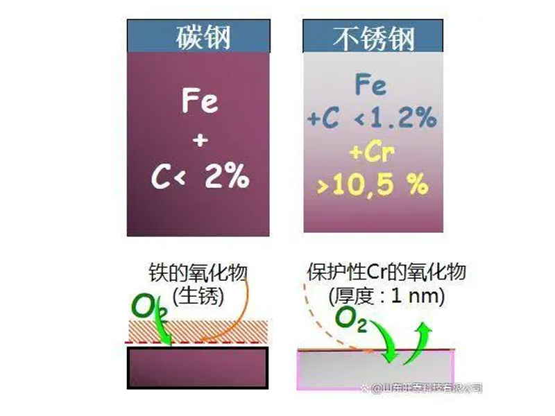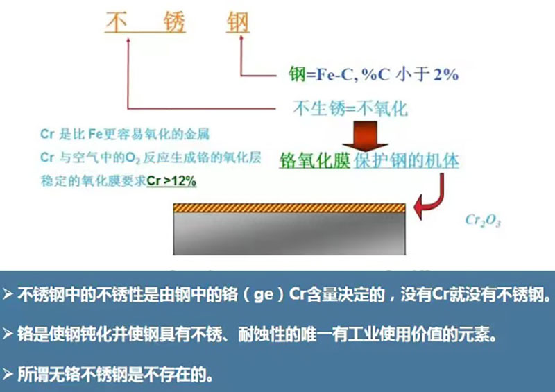 首先認(rèn)識(shí)一下什么是不銹鋼以及不銹鋼為什么能耐腐蝕?所謂的鋼腐蝕主要是鋼中的鐵元素和外界的氧氣以及各種酸發(fā)生了化學(xué)反應(yīng)造成了腐蝕,那么不銹鋼之所以耐腐蝕就是因?yàn)殇撝刑砑恿算t元素,由于鉻元素的存在形成了一層鈍化膜,那么這層鈍化膜保護(hù)了鐵元素與外界氧以及各種酸的反應(yīng)條件,所以對(duì)不銹鋼當(dāng)中的鐵元素起到了保護(hù)作用,所以不銹鋼才具備了耐腐蝕的特性,