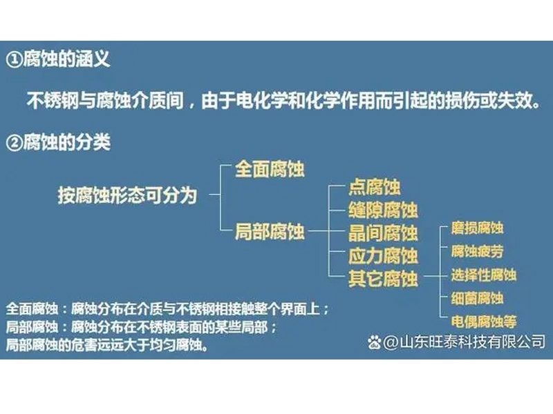 金屬的腐蝕一般分為全面腐蝕和局部腐蝕,局部腐蝕的危害性要遠(yuǎn)遠(yuǎn)大于全面腐蝕,同時(shí),不銹鋼產(chǎn)品一般不存在全面腐蝕的現(xiàn)象,所以我們這次重點(diǎn)就認(rèn)識(shí)一下局部腐蝕當(dāng)中的點(diǎn)腐蝕、縫隙腐蝕、晶點(diǎn)腐蝕和應(yīng)力腐蝕,