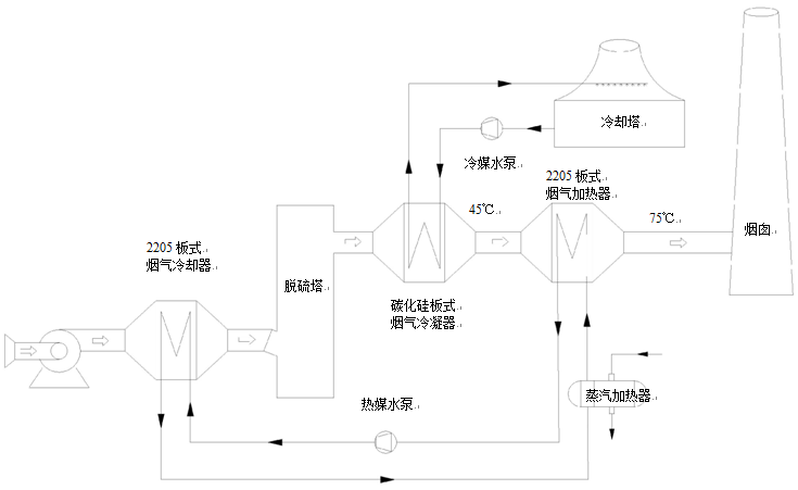 煙氣冷凝器將采用碳化硅板式換熱器。整個設(shè)備由板束芯組、箱體和進出口連接管道等主要部件組成。設(shè)備以板束芯體作為傳熱單元,以碳化硅板塊作為傳熱元件,采用該方案具有以下幾方面主要優(yōu)點采用高導(dǎo)熱高防腐碳化硅材料;碳化硅板式結(jié)構(gòu)空間小,阻力??;箱式模塊化,便于安裝和更換;采用板孔技術(shù)內(nèi)部孔徑小,實現(xiàn)高效傳熱采用該設(shè)計方案能完全滿足買方板式換熱器使用要求,并能降低運行費用,減少維護成本。