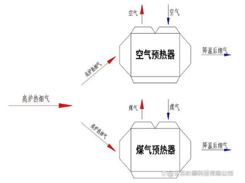 2、高爐煙氣/空氣、煤氣雙預(yù)熱余熱回收系統(tǒng)