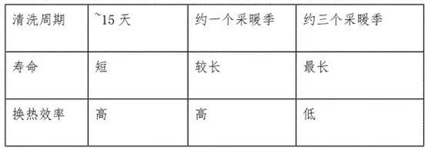 寬通道換熱器采用無過濾間壁式逆流換熱原理,其流道寬度較常規(guī)板式換熱器有所加大,對污水中常見的固體懸浮物具有較好的抗堵性,但沖水對換熱器的堵塞并非全部由固體懸浮物造成,溶解在沖渣水中的大量鹽堿類物質(zhì)在換熱過程中飽和析出并與高溫沖渣水中的懸浮物結(jié)合后附著在換熱壁表面,對換熱壁面造成污染、腐蝕甚至堵塞。換熱器合理的板型選擇以及流量設(shè)計,可以有效減少沖渣水堵塞換熱設(shè)備的問題