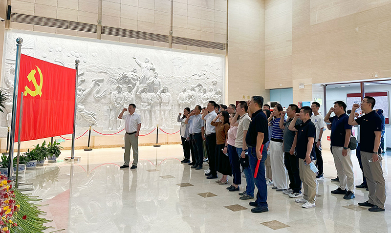 在紀(jì)念館內(nèi),公司黨委書記孫亞龍領(lǐng)誓,全體黨員在黨旗的見證下,重溫了對黨忠誠的錚錚誓言。