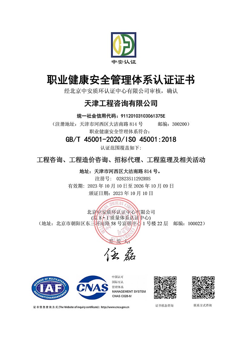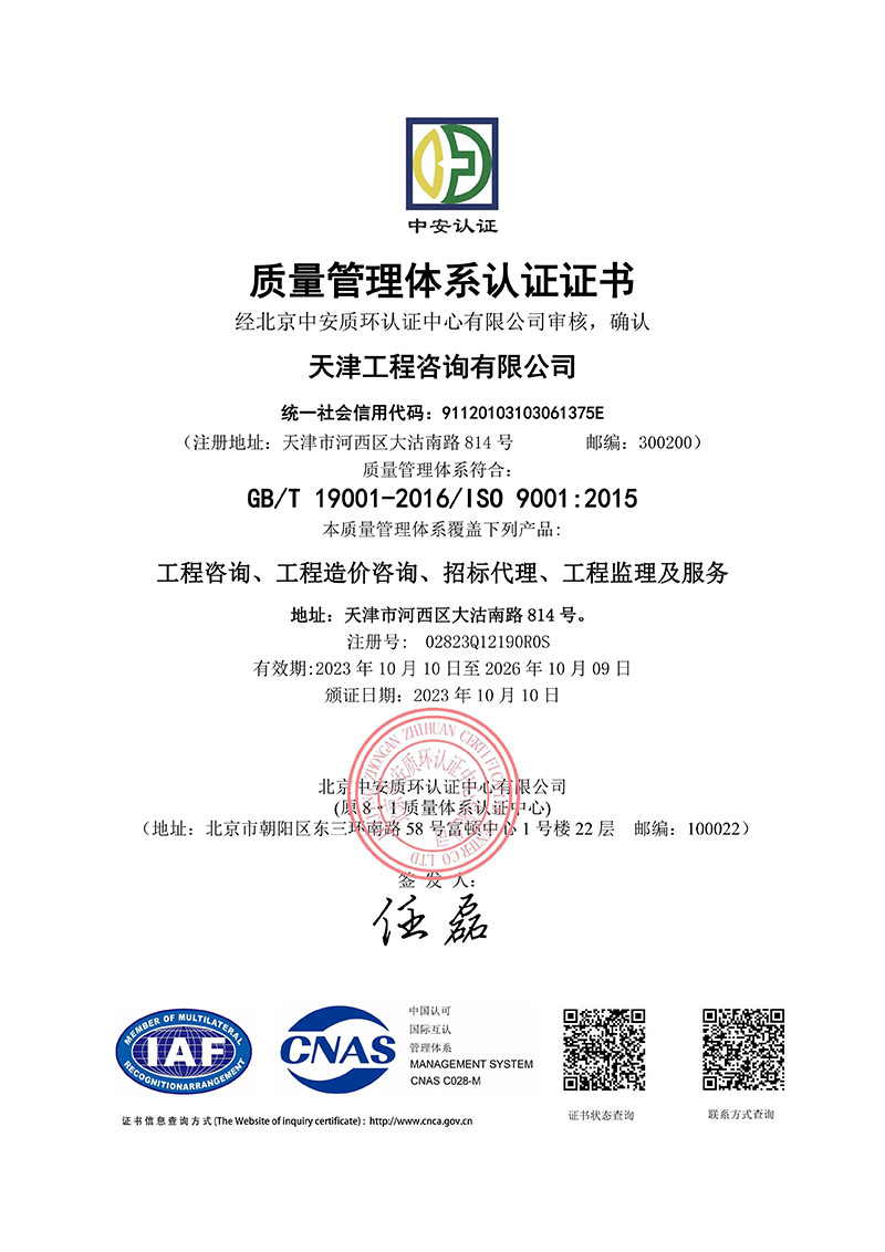 同時(shí),為進(jìn)一步規(guī)范公司內(nèi)部管理,保障服務(wù)質(zhì)量,向管理要效益,天津咨詢啟動(dòng)了ISO三大管理體系認(rèn)證工作。本次通過ISO三大管理體系認(rèn)證審核,對(duì)于公司完善管理體系,推動(dòng)質(zhì)量、環(huán)境、職業(yè)健康安全管理體系持續(xù)有效運(yùn)行,進(jìn)一步提高管理水平具有重要意義,不僅有助于增強(qiáng)企業(yè)競爭力,而且樹立了優(yōu)良企業(yè)形象。