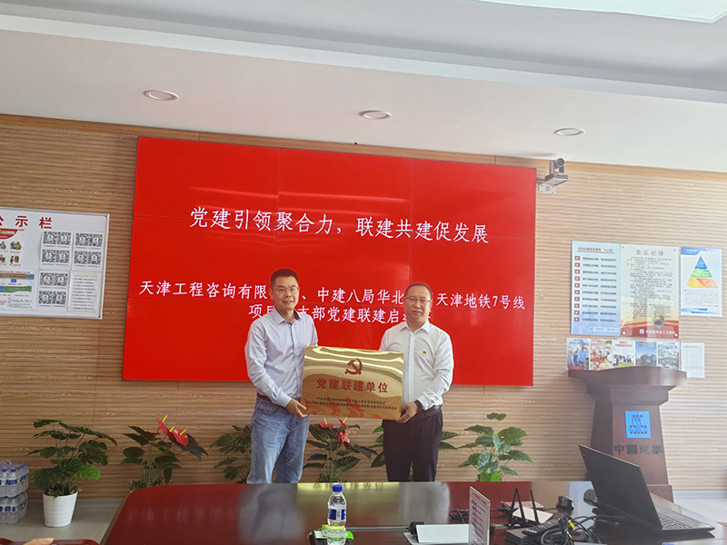 5月20日,為進一步加強天津地鐵七號線參建單位之間的深入交流合作,有力發(fā)揮黨組織引領凝聚作用,搭建常態(tài)化的溝通交流平臺,推動項目健康、快速、高質量發(fā)展,打造優(yōu)質地鐵工程,在深入開展中央八項規(guī)定精神學習教育之際,天津咨詢第三事業(yè)部黨支部與中建八局華北分公司六里臺站黨支部開展了主題黨日暨黨建聯(lián)建共建活動。天津咨詢公司黨委委員、副總經理鐘海榮、中國建筑第八工程局有限公司華北分公司基礎設施分公司黨總支副書記、執(zhí)行總經理龐衛(wèi)濤等出席活動并揭牌。
