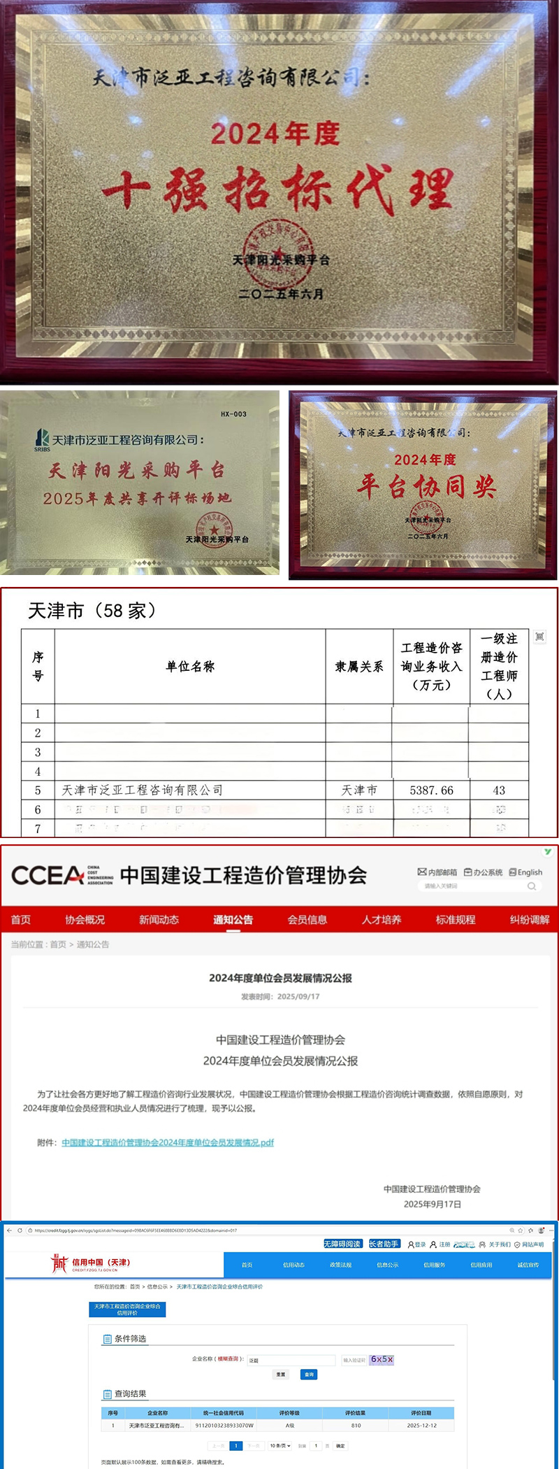 天津咨詢所屬泛亞工程咨詢有限公司保持招標(biāo)代理行業(yè)“領(lǐng)頭羊”地位,在天津陽(yáng)光采購(gòu)平臺(tái)2024年度招標(biāo)代理執(zhí)業(yè)評(píng)價(jià)工作中,榮獲“年度十強(qiáng)招標(biāo)代理&平臺(tái)協(xié)同”“2025年度共享開(kāi)評(píng)標(biāo)場(chǎng)地”等榮譽(yù)稱號(hào)。泛亞咨詢還持續(xù)深化造價(jià)咨詢服務(wù),取得2025年度天津市住建委造價(jià)企業(yè)信用等級(jí)A級(jí)認(rèn)證,在中國(guó)建設(shè)工程造價(jià)管理協(xié)會(huì)2024年度排名中穩(wěn)居天津市前5名。2025年,泛亞咨詢參加首屆全國(guó)招標(biāo)采購(gòu)專業(yè)技能斬獲多個(gè)獎(jiǎng)項(xiàng)。泛亞咨詢充分展示行業(yè)領(lǐng)先水平,參加全國(guó)招標(biāo)采購(gòu)專業(yè)技能大賽,獲得天津賽區(qū)團(tuán)體賽一等獎(jiǎng);3名員工包攬個(gè)人一、二、三等獎(jiǎng);22名員工分別榮獲優(yōu)秀獎(jiǎng)、潛力獎(jiǎng)。泛亞咨詢受邀代表天津市參加全國(guó)行業(yè)大賽,經(jīng)過(guò)激烈角逐,最終斬獲全國(guó)首屆招標(biāo)采購(gòu)專業(yè)技能大賽一等獎(jiǎng)、數(shù)字創(chuàng)意獎(jiǎng)。天津市建設(shè)工程造價(jià)和招投標(biāo)管理協(xié)會(huì)為此特發(fā)來(lái)賀信予以祝賀肯定。