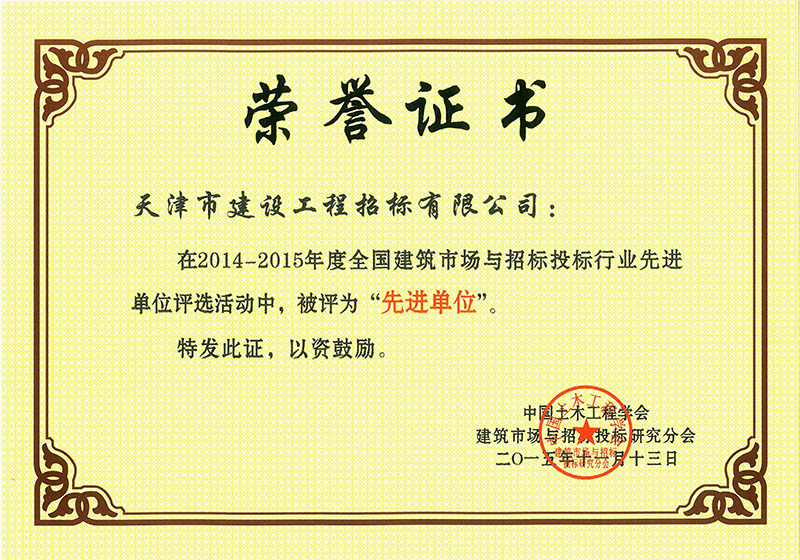 14-15年全國建筑市場(chǎng)與招標(biāo)投標(biāo)行業(yè)先進(jìn)單位