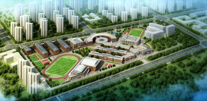 天津生態(tài)城中部片區(qū)、中天大道與中泰大道交口南側,四至范圍:東至中央大道,南至規(guī)劃居住用地,西至中天大道,北至中泰大道??偨ㄖ娣e18.75萬平米,其中地上16.32萬平米,地下2.43萬平米??傆玫孛娣e20.4萬平米。包括:校史館、禮堂、科技藝術樓、圖書館、實驗樓、行政樓、教學樓、辦公樓、體育館、網球館、學生食堂、服務中心、學生宿舍、教師宿舍、地下車庫、其他連廊及室外部分等。