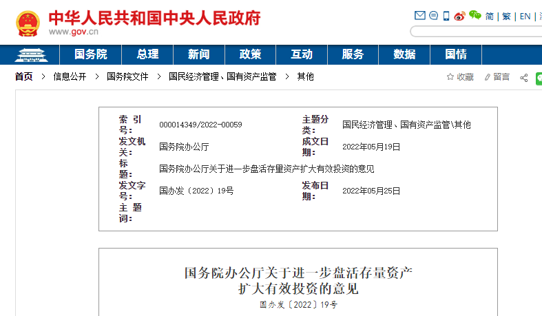 國務院辦公廳關于進一步盤活存量資產(chǎn)擴大有效投資的意見