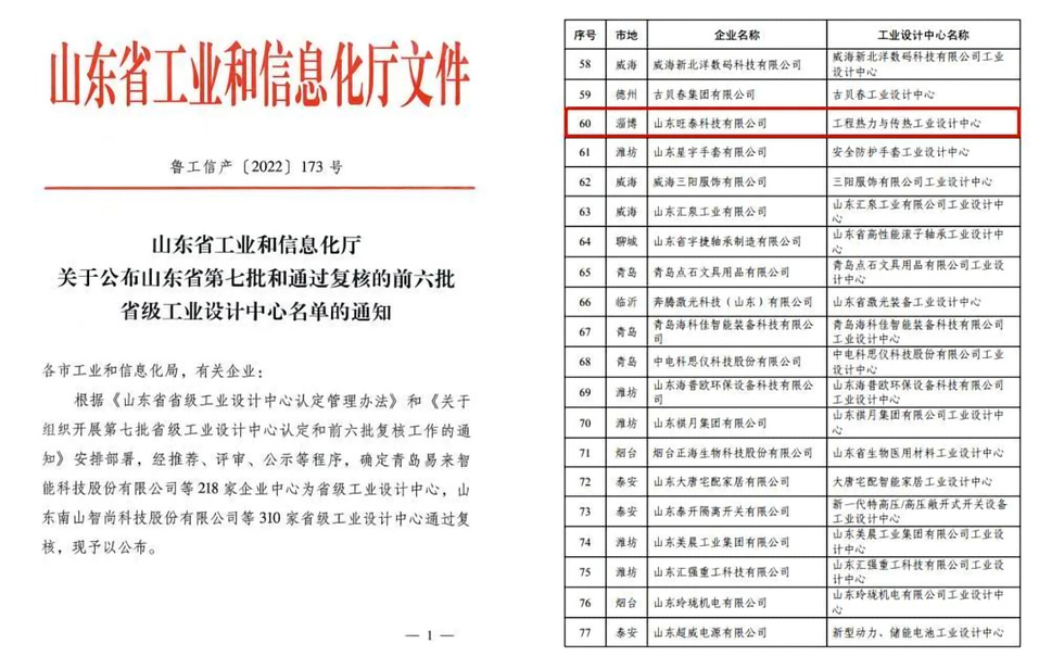 山東省工業(yè)和信息化廳公布了2022年山東省第七批省級(jí)工業(yè)設(shè)計(jì)中心認(rèn)定名單,山東旺泰科技有限公司成功入選。這是繼2022年榮獲山東省瞪羚企業(yè)后,山東旺泰科技又一個(gè)被認(rèn)定的省級(jí)榮譽(yù)。